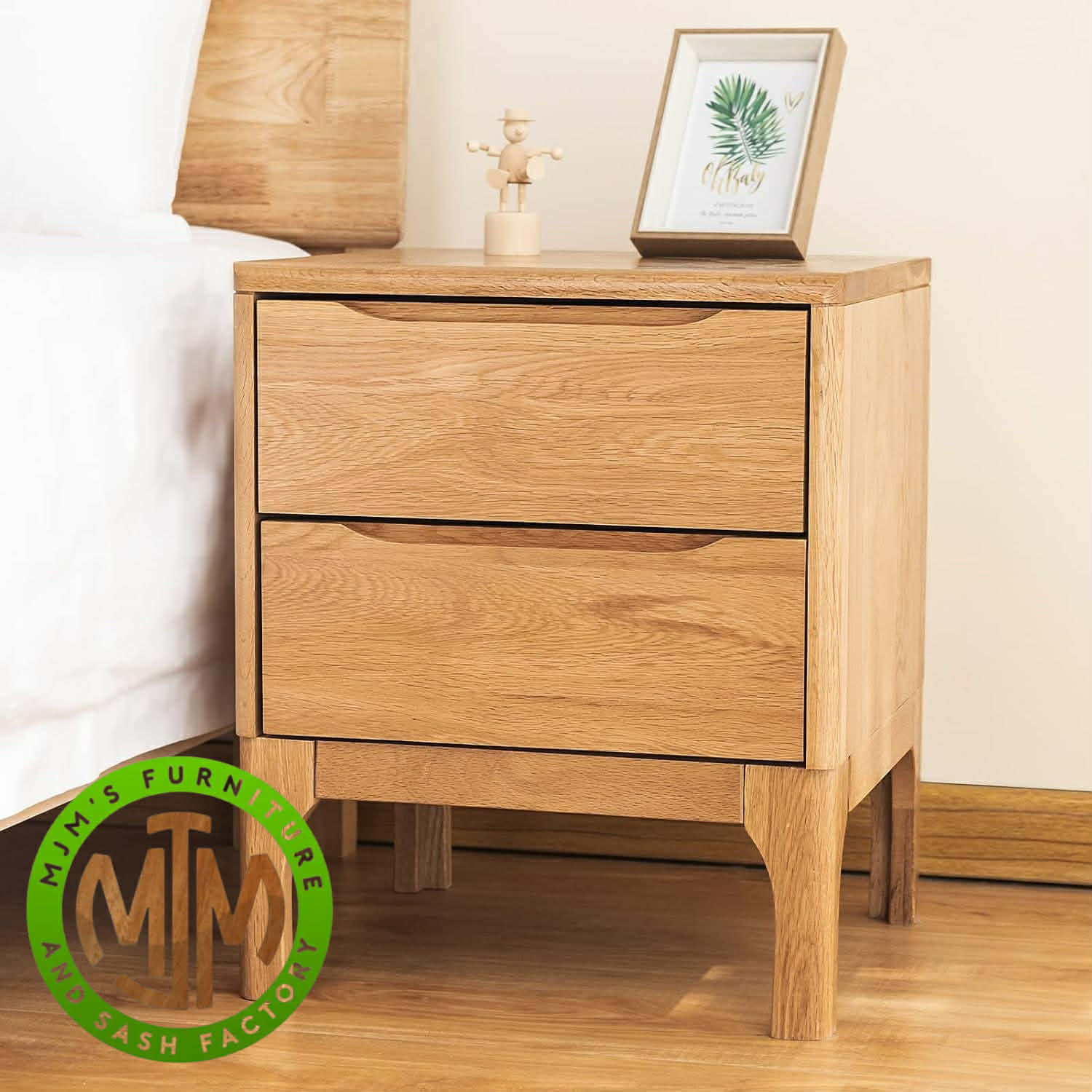 The Colette Nightstand blends clean lines with a minimal silhouette and incorporates 2 drawers. The nightstand was inspired by Nordic design and easily matches the décor of any room. The Colette Nightstand is constructed from solid oak paired with brass hardware details. It can be used on its own or placed next to a bed.