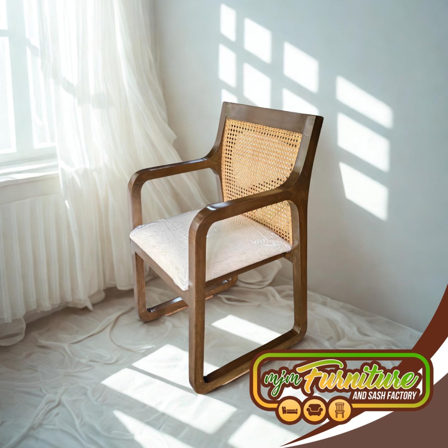 Traditional Filipino craftsmanship and tropical modern aesthetics, the Manila Cane Dining Chair offers a timeless appeal. Its robust frame of solid mahogany, finished with a clear matte varnish, beautifully showcases the wood's rich reddish-brown tones and fine grain. The seat and backrest feature meticulously handwoven rattan, providing natural breathability and an inviting texture.