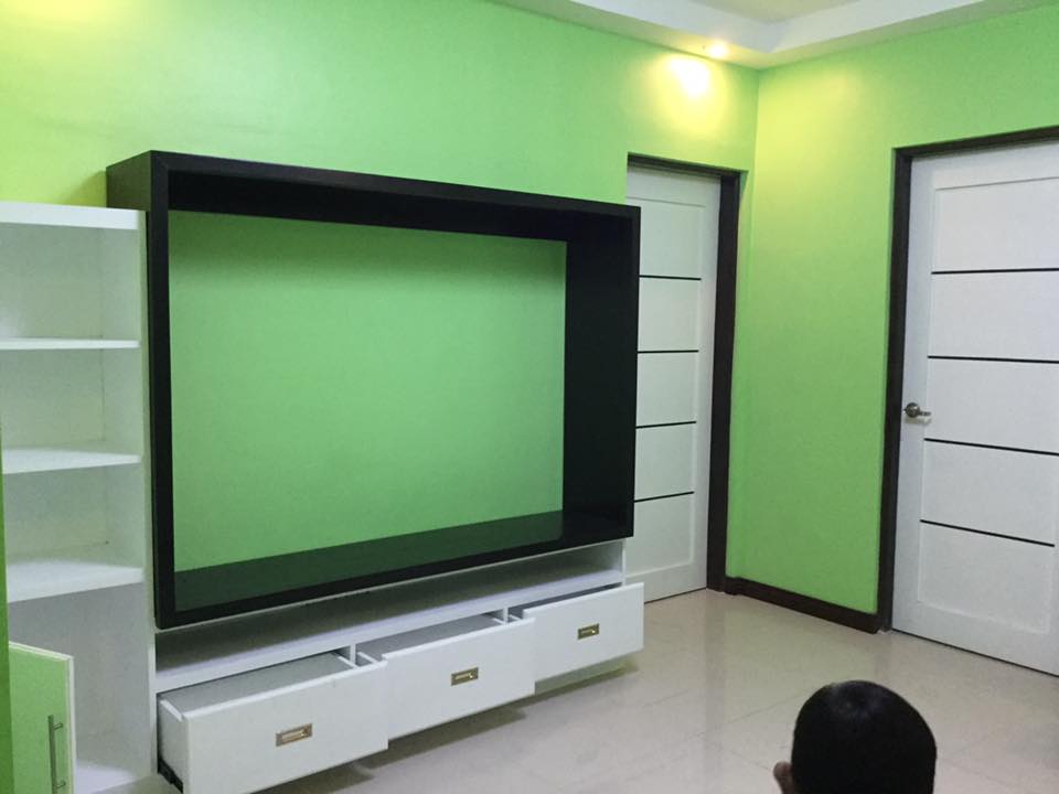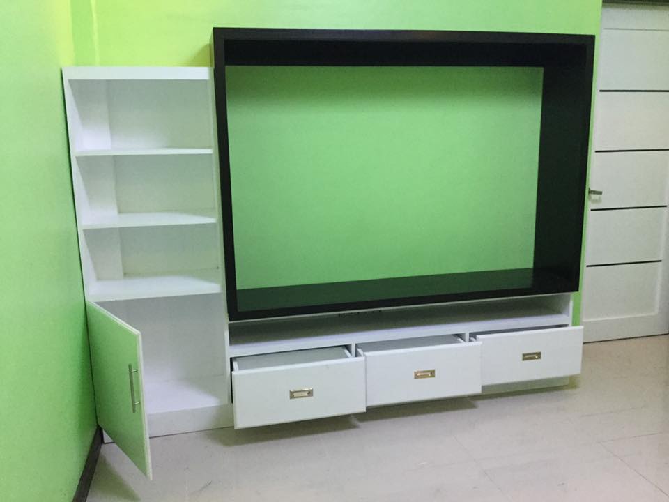 A stylish eco-friendly cabinet with a wide open shelf for your TV and three spacious drawers below for extra storage. Sleek green finish for a refreshing vibe.
